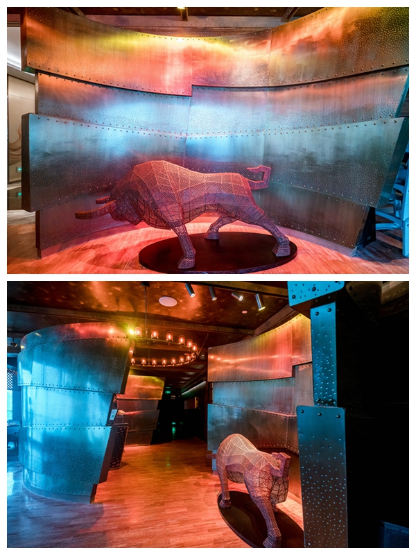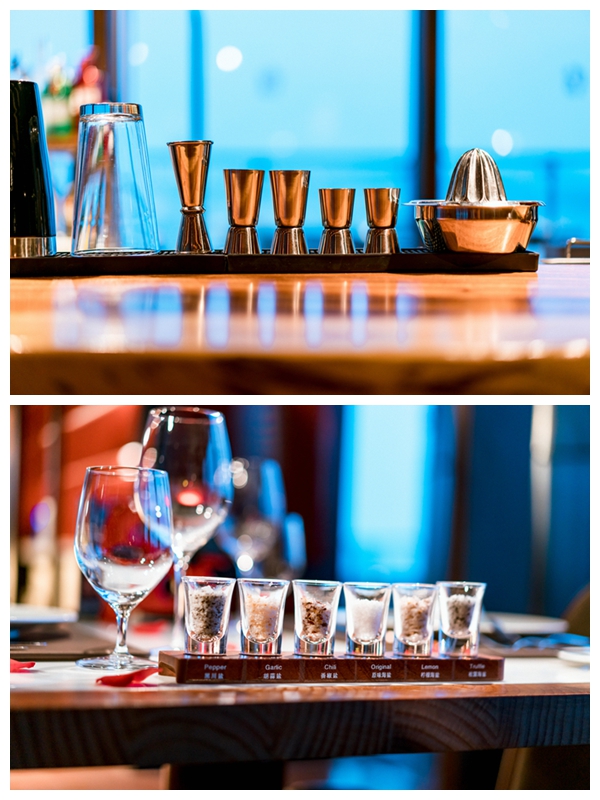 夜晚的就餐,我们选择5楼的“恰餐厅与酒吧”,作为洲际品牌旗下的美式西餐厅,16年进入中国市场,在北京、上海、广州等地引起了不小的轰动,在国内的家数更是屈指可数,而珠海就占据一席之位。珠海恰餐厅的大门也是一道靓丽的风景线,将“公牛”运筹帷幄于“双臂”之间,可见餐厅对牛肉掌控度方面的自信。