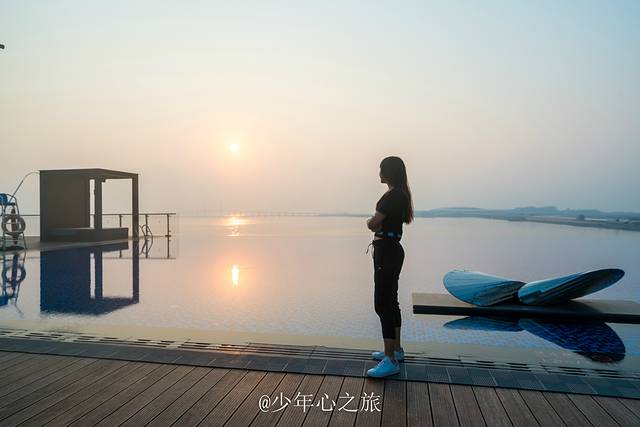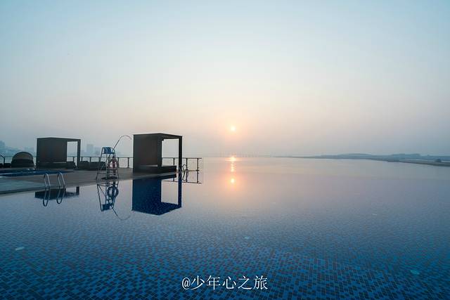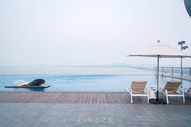 五月份才对外开放的无边泳池,或许很多小伙伴还不知道,但这里很快会成为珠海下一个网红打卡点,毕竟能正面和港珠澳大桥同框合影的无边际泳池在珠海仅此一个,可惜白天的天气稍微有点欠缺,空气不是很通透,所以港珠澳大桥略微有几分模糊美。
