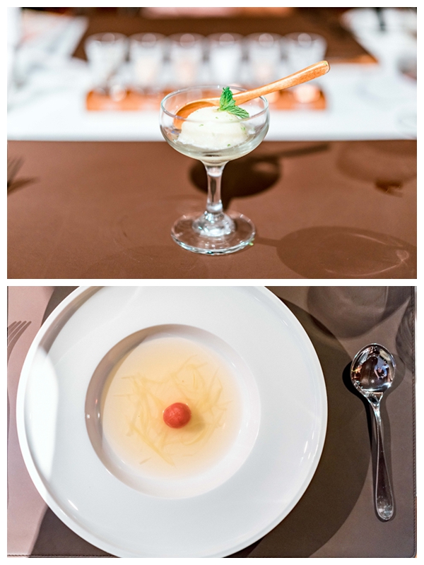 “中原一点红”的番茄清汤酸甜可口,而清香的柠檬冰沙开胃十足,绿色薄荷的清新,似乎为后边的大菜做铺垫。