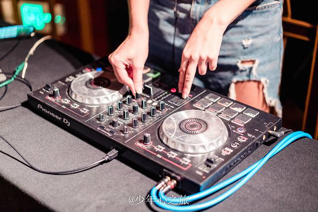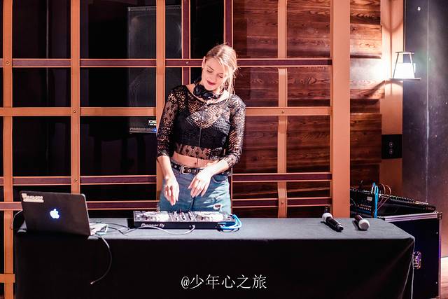 而负责打碟的是来自俄罗斯的DJ小姐姐,笑起来超甜,熟练的调试动作,伴着音乐节奏舞动迷人的身姿,将现场气氛一次次推向高潮。