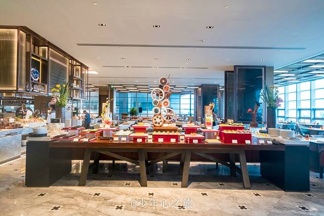 瑜伽之后,消耗了太多的能量,我们选择在“悦”全日餐厅补充体能,门口的提拉米苏、焦糖布丁等甜品就猝不及防地来了一个“甜蜜暴击”,造型精致的甜品让人忍不住咽了几下口水。