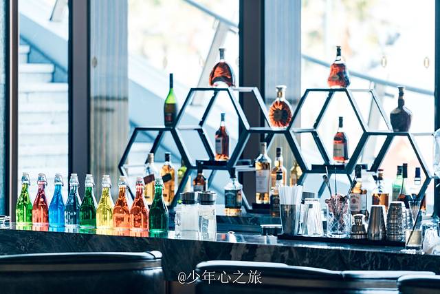 海洋色的地毯,浅白淡蓝的色调,都与大海的主题非常契合,低调沉稳的色彩,也很容易让人沉下心来,啤酒、麦芽威士忌、创意鸡尾酒、芬芳的葡萄酒、咖啡和茶点,众多品种皆可选择,闲暇的午后,在如此典雅的环境,来一杯下午茶,独享一份悠闲的时光。