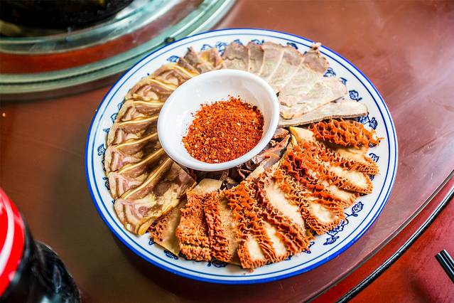 肚片、舌片+辣椒粉蘸料。