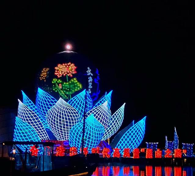 兵荒马乱中所幸遇上了南湖灯会,流光溢彩,花开并蒂,灯映两岸!