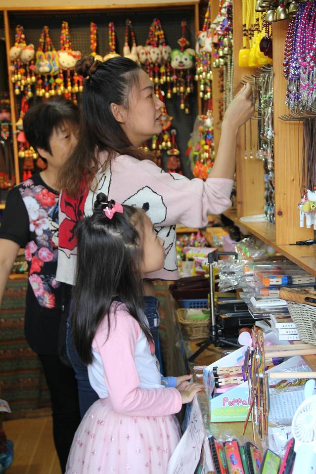 当孩子因为人多烦躁时,我就拿出杀手锏,给她在路边买一条小手链