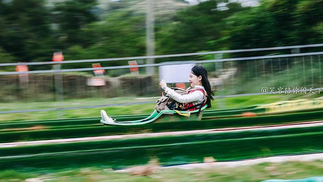 或许有人会说,只摘莲蓬会不会太无聊呀,在新屋村,可没有无聊一说。这里是丽水市开发得相对成熟的一个景区了,在体验完采摘莲蓬的活动后还可以到山坡上玩滑草滑索,体验丛林穿越项目。小朋友们最喜欢的恐怕就是滑草项目了,有个小朋友竟然玩了不下5次,爬滑草的高度她甚至觉得都不是问题,战斗力无限升级。而一直嚷嚷着在健身的笑容大朋友,只爬了一遍楼梯就有点气喘吁吁了,果然还是小朋友们厉害!