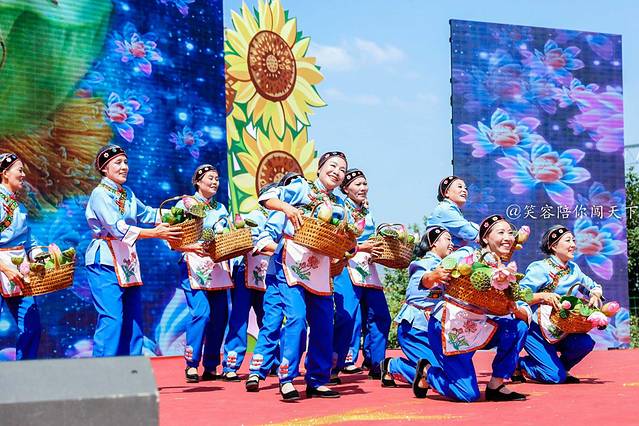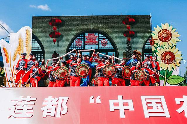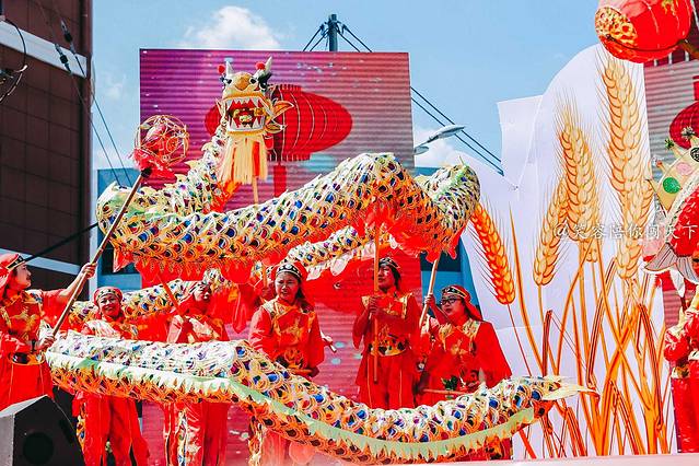 沿着气球的路走到尽头,可以到达会场的主舞台,舞台的设计也十分接地气,你看上面还摆着几个大南瓜呢!表演的节目结合了本地的文化特色,不仅有传统的唱歌,还有舞龙等,场面十分热闹,展现的正式农民们丰收的喜悦,让人也忍不住跟着欢喜起来。农民伯伯们收获的是丰收的喜悦,而我们收获的是旅途的喜悦。
