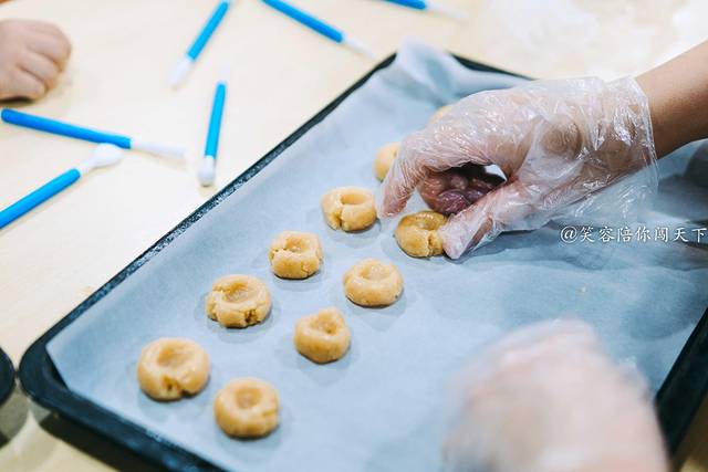 小朋友们和大人们可以雕刻出一些好看的形状,制作完成后就可以放进烤箱里。有的宝宝还小,基本就是抓着玩玩,有的宝宝懂事了,还会做一些好看的造型,瞧着宝宝,就做了一个大星星的造型。大多数家庭还是做的桃酥的造型,简单操作。不管做成什么样子,便是一种很不错的体验,乐在其中。
