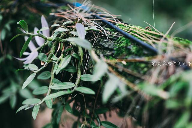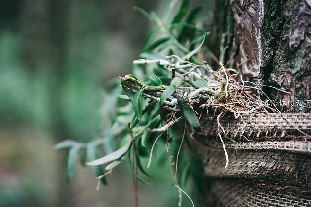 山上沿途都是树木,但你会发现这里的树和其他地方看到的树不一样,因为上面围了一圈又一圈的铁皮石斛。在技术上,我们通常把这种技术称之为仿野生活树附生栽培技术,铁皮石斛能在此有个很好的生活环境。