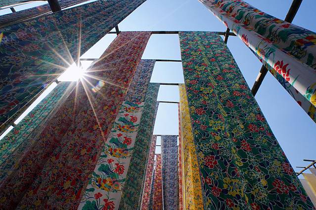 除了 江南 水乡典雅的美, 古北水镇 还有很多好玩的地方可以体验,镖局、会馆、酒坊、水舞剧场、风筝文化馆、年画坊,书院等等,最让我喜欢的还是这个叫 永顺 染坊的地方。 永顺 染坊展示了从石器时代到现在各个时期的印染技术成就和特色,在老师傅手中展现的淋漓尽致,你也可以向染坊老师傅请教如何操作,亲手做一块布,也算是旅途中一件很有意义的事情,你还可以在这里拍拍照片,特别有感觉,分分钟穿越到电视剧中的感觉。