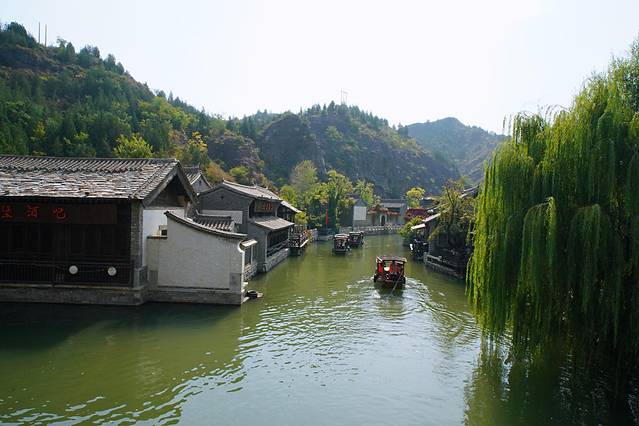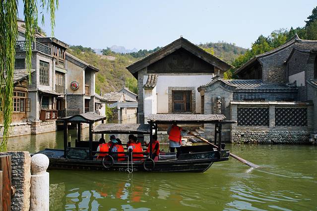 走过 古北水镇 的街街巷巷,看遍水镇的各种小店,你就能看到河道密布的水镇了,古老的汤河支流萦绕其间,古建筑、民宅依水而建,在清新空气、蓝天白云、绿水波涛、参天绿树的掩映之下,宛如一片鲜为人知的世外 桃源 ,在这里你可以乘舟游览,如同置身在画中,静静聆听水镇的故事。