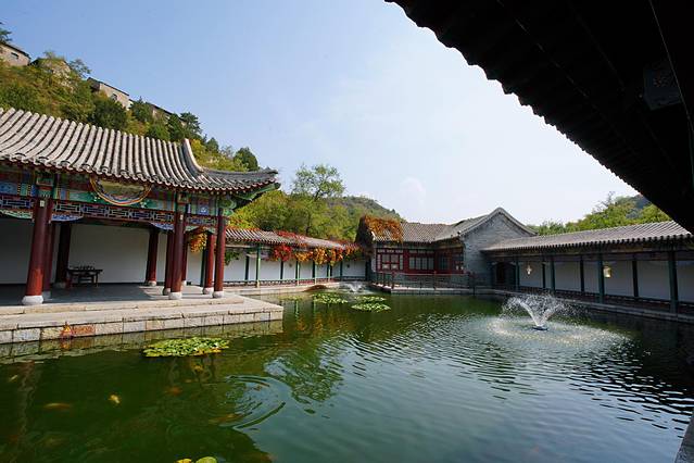走进 古北水镇 ,便被这里的景色吸引了。大大的南 天门 出现在我眼前,“山自穹窿水自潺,扼吭朔塞此雄关”这是乾隆提的诗,大概是说山势高耸,流水潺潺,南 天门 是是扼守北塞的重要关口,可见当时的 古北水镇 是兵家的重要之地。