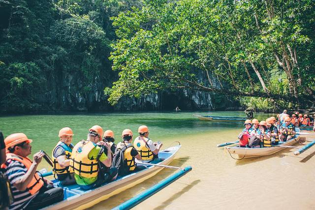 进入洞口需要换乘人力小船,并且必须穿救生衣和戴头盔哦~特别提示,洞里掉下来的可能是水滴,也可能是蝙蝠的便便哦,所以头盔的作用显而易见!