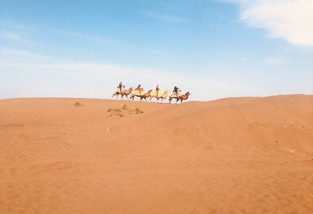 坐在驼背上,伴着清脆的驼铃声,一摇一晃的把你带入到遥远的时空中