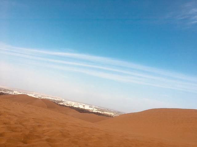 这次是带人去玩,在去哪儿网上订的门票,以为和我第二次去时一样进去就能玩,这次来发现景区大门也换了个地方,门票进去后只能自己转转,现在景区有两趟区间车,1号线和2号线,分别去不同的游玩景点,可以根据自己想玩的项目买区间车的票,1号线30元,可以玩沙漠摩托,110元/人,沙漠冲浪160/人,2号线35元,线路上可以玩的有沙漠越野500元/人,沙漠滑沙也是一百多一人,我们选择的1号线,可以把你拉进沙漠里面,在那里玩了沙漠冲浪,一人160,也有130的,就是距离短点,一般都是160的,开车师傅技术很好,带你在沙漠里穿行,时不时爬个沙坡,很刺激!拉到沙漠深处可以自己游玩,拍照,然后坐车再返回来,风景真是好,色彩鲜艳的衣服拍照也是非常漂亮,就是特别干燥,需要多喝水,做好防晒工作,景区相比于以前,商业化气息更浓,人为景观也越来越多,失去了一些它原本该有的东西,不过对于没有见过沙漠的人来说,这里还是很有感觉的,另外,想看沙漠日落,体验大漠孤烟直,长河落日圆的人,要保留好门票,门票36小时有效,可以免费进园看日落或者日出🌅