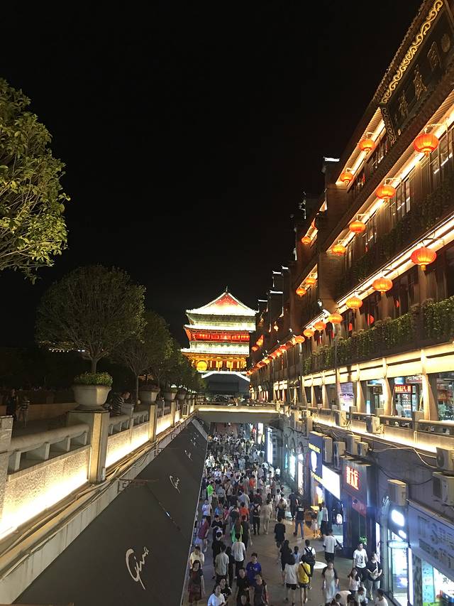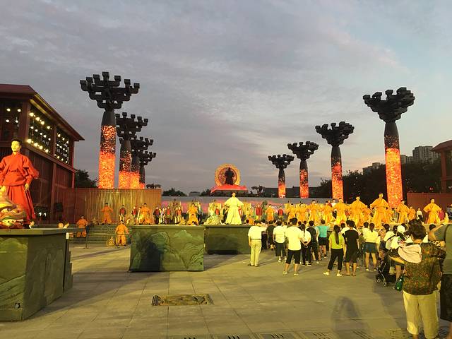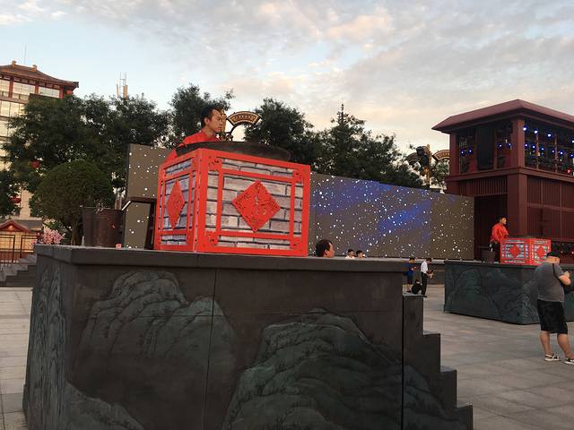 建议大家到大唐不夜城后先走到尽头。开始逛。 因为尽头在七点钟左右有一场演出。免费的哦。也很壮观。看完演出后再从尽头往大雁塔方向逛