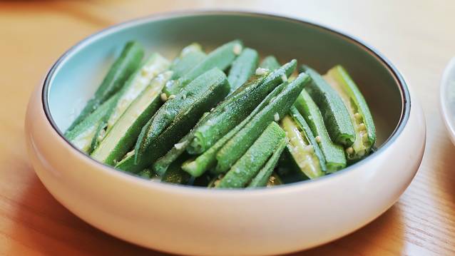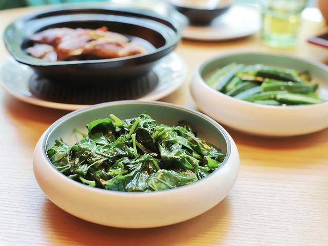 秋葵和青菜就是素炒,口味非常之清淡,而且食材绿油油的,一看就很新鲜。