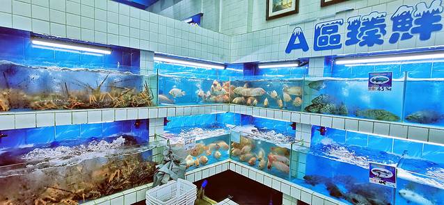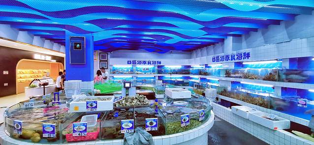 看了一阵便走进一楼醒目的海鲜量贩超市挑选海鲜了,走进去一看里面空间好大啊,分为两个区域,一个是A区臻鲜活海鲜区域,一个是B区海家食海鲜区域。对于我这个喜欢海鲜但没有真正研究过海鲜的假吃货而言,反正看眼缘,是鲜活的就行~