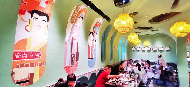 买好海鲜就到一楼的东榕囍家加工,这是港粤餐厅,装修风格很复古,大有香港茶餐厅的升级版之派。