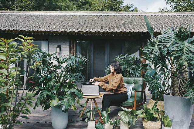 午后的阳光格外温柔,搬一把椅子坐在门前的休息区,拿出收藏了很久的老唱片,一边听着轻快愉悦的音乐,就这样把时光揉进岁月里,不慌不忙,不急不躁的在小院里慢慢生活。