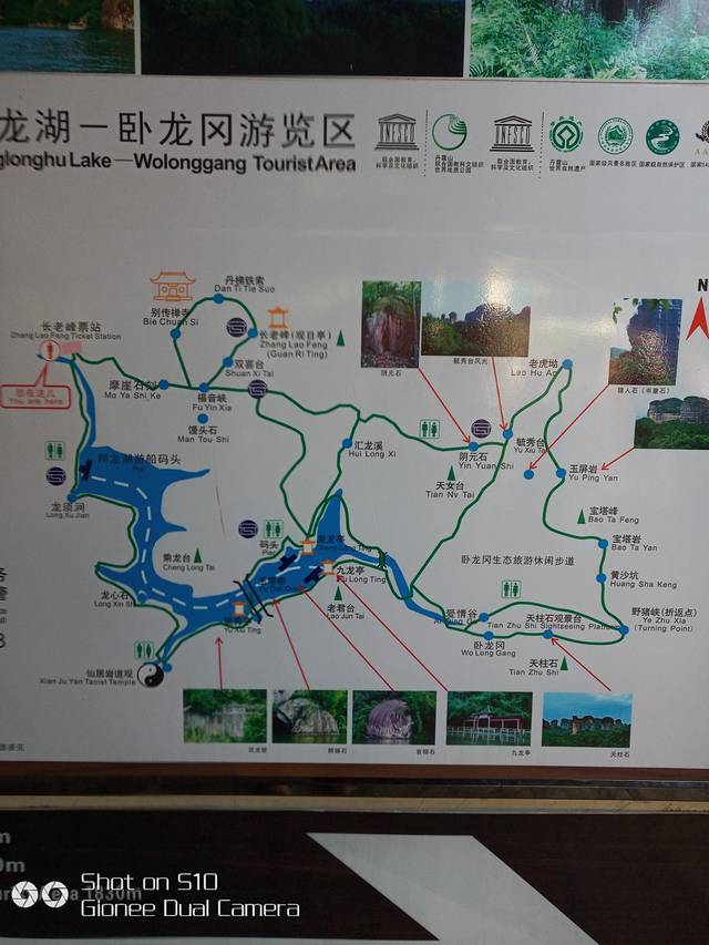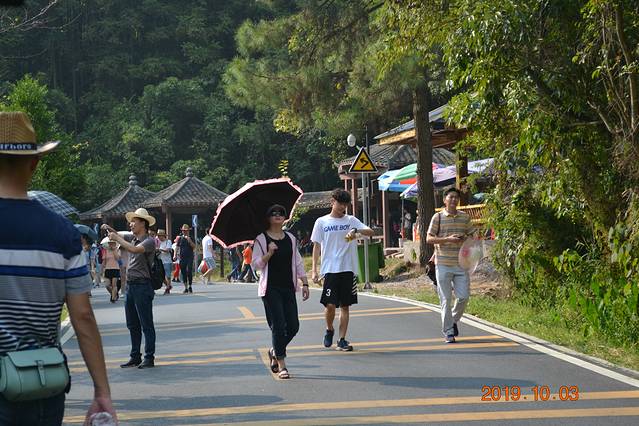 返回后继续前行到阴元石,到这里后前行到黄沙坑》野猪峡》天柱石,但是当天封闭去不了,小道路程也很远,于是右边下山到卧龙岗》九龙亭》仙居岩》龙须亭出景区。