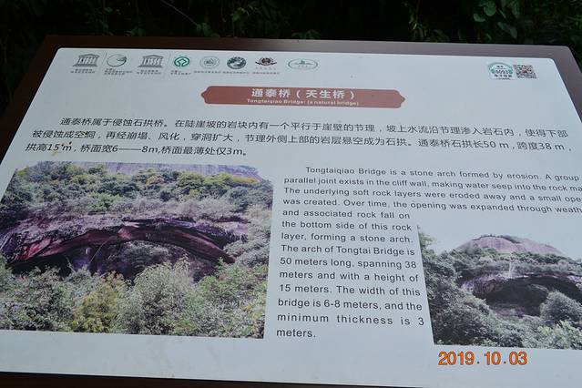 10.3,选3号走是怕堵车,经过4个小时的车程来到目的地丹霞山,刚好到中午吃饭,就在住处旁随便找了一家,吃完就进景区。丹霞山分2处景点,阳元山和长老峰,前期做了功课,要玩好最少要2天行程,因这天只有半天了所以就先玩阳元山,因长老峰比较大需要1整天。阳元山很陡,正面路被封,只能下,就从玄机台上山,想到时间不够,就先去了通泰桥那边,通泰桥那边景点与阳元山是分开的2个景点,所以快马加鞭走完通泰桥,不是很陡大慨1.5H走完吧。下来后就从玄机台上山,已快到6点了,九九天梯这里很陡,上山需特别注意安全,我小子因跑到前面,人多又追不上,快到顶时太陡了估计有超过60度,足吓了我们一身冷汉。带小孩需特别注意一起上山,不然会吓死,回来后好好教育了一顿。