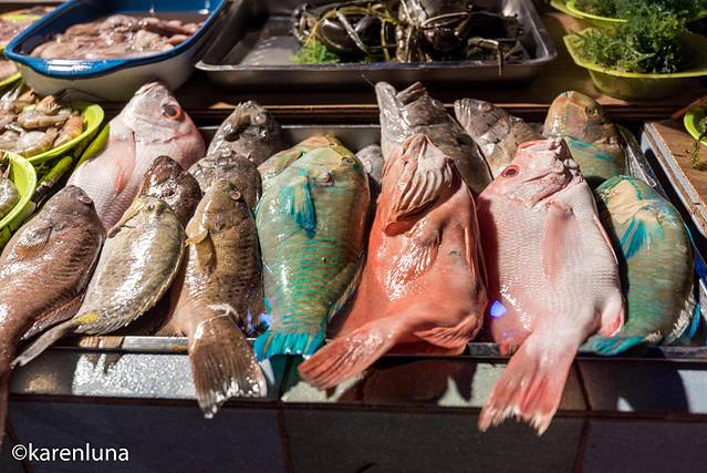 临街的货架上,超大的螃蟹、鲜活的龙虾、吐着水的贝壳,真是种类繁多得让人眼花缭乱,但像我这种见到海鲜就两眼放光的人,简直正合我意,这个来一只、那个两三个,分分钟一大桌海鲜饕餮盛宴get~