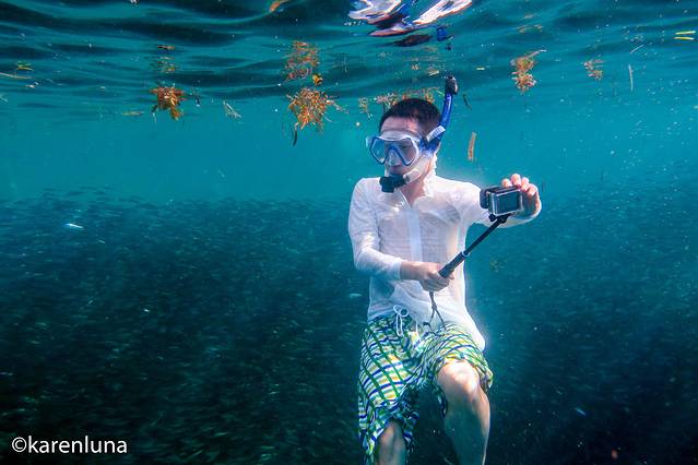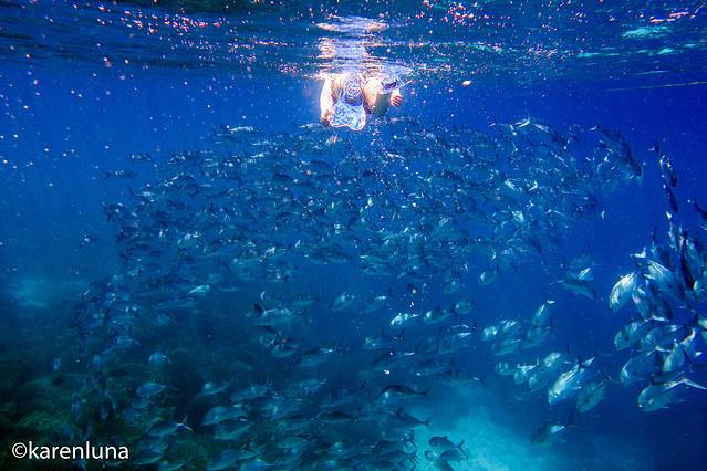 老公正想着游到其中,感受一下被鱼群包围的乐趣,却被跟着我们同游的船长及时制止了。如今的当地人也逐渐有了环保意识,在这片海域,每名游客都只能限时30分钟,并且不能投喂食物,也不能冲进鱼群把他们要吓散,为的就是能让这群“风暴”安安心心得一直出现在这里,让以后来到这里的游客也都能看到它们的身影。
