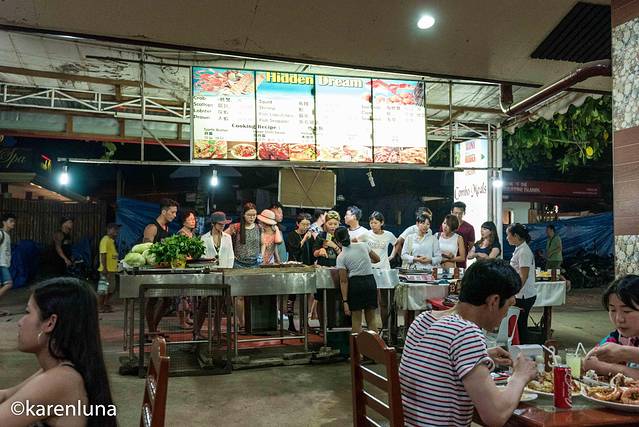 说实话,每天出海回来,不管是一天还是半天,真是有些累的。所以晚上都想要来一顿大餐犒劳自己。而来海岛,自然是要吃我最爱的海鲜美食啦,除了入住的酒店之外,薄荷岛美食最汇集的地方就是Alona沙滩啦。自从上次离开,就一直对那大螃蟹和烤猪排念念不忘,也不知道曾经那个红过半边天的海鲜店还在不在。