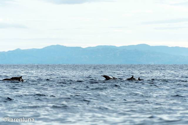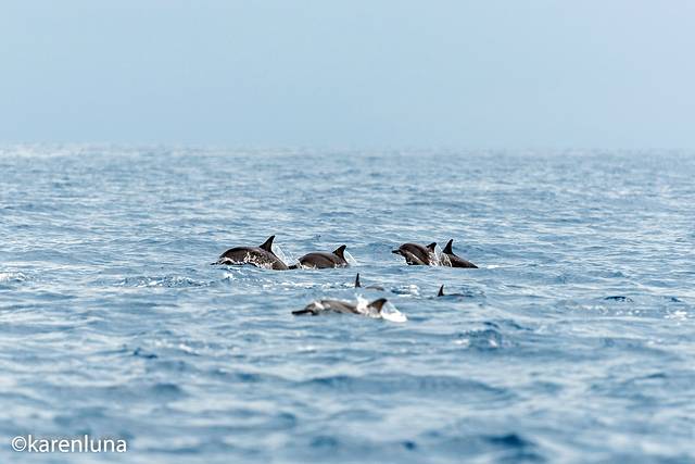 为了能更近距离的看到这些人类的好朋友,我们的船“围追堵截”了好几次,但是海豚游得太快了,方向变换的也非常灵活,有时候在船边出现,有时候却又在另一个方向看到他们的踪迹。不过能亲眼看见野生海豚我已经觉得太幸运了。