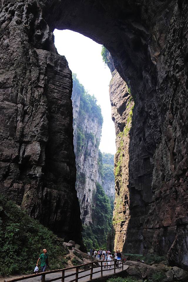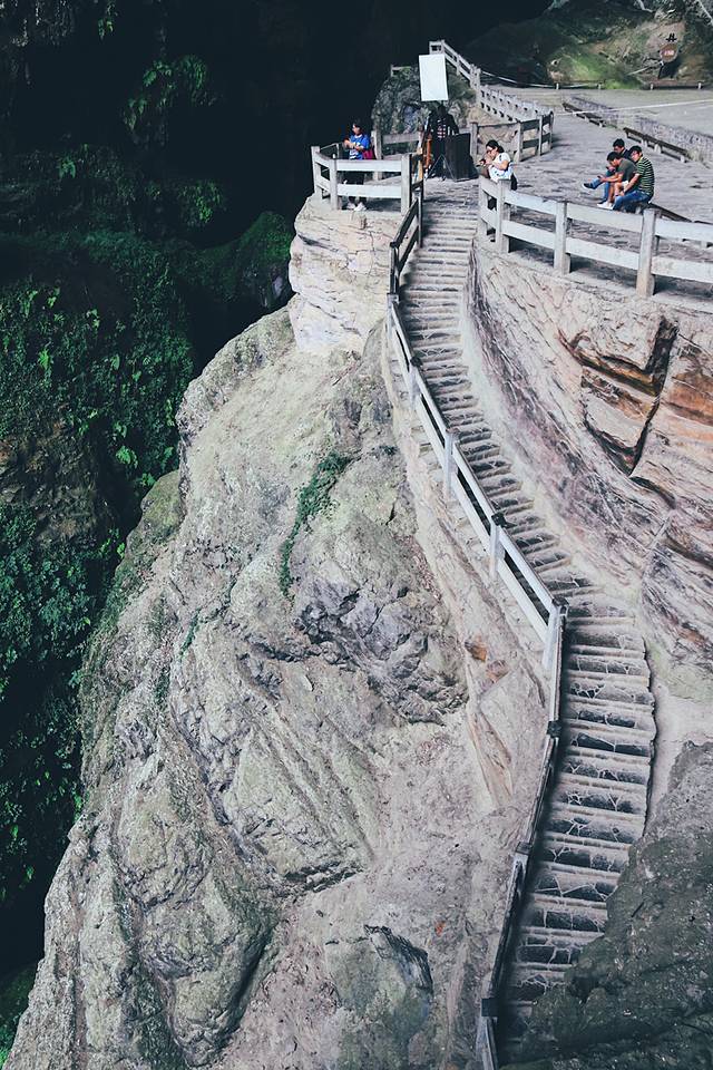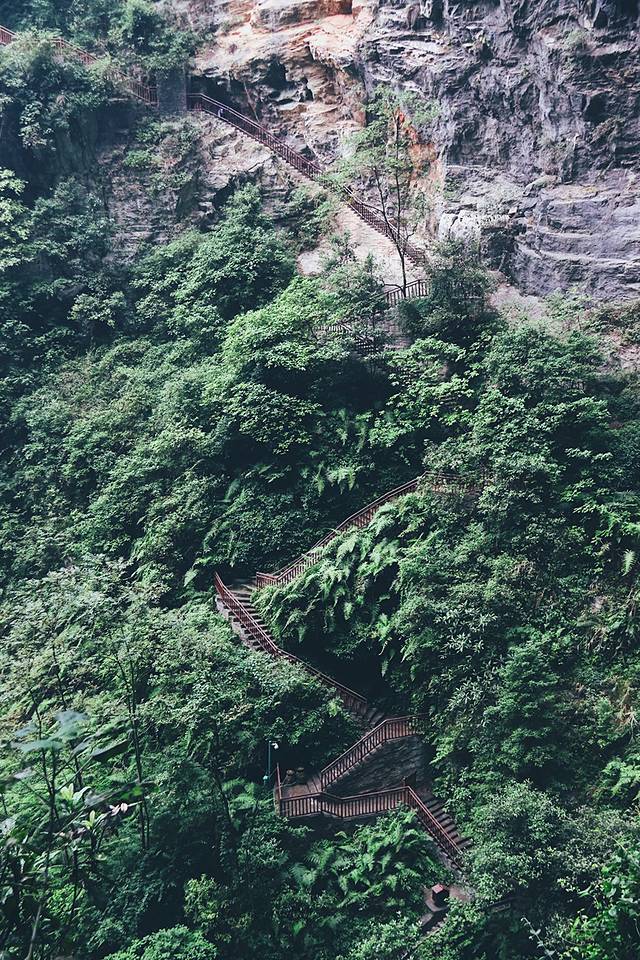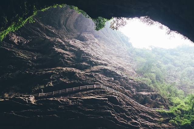 依次走过天龙桥、青龙桥、黑龙桥三座气势磅礴的天生三桥,是亚洲最大的天生桥群。周围灌木丛生覆盖三桥,雾气弥漫,高大的三桥犹如连通天界神宫的天桥,确实让人震撼。