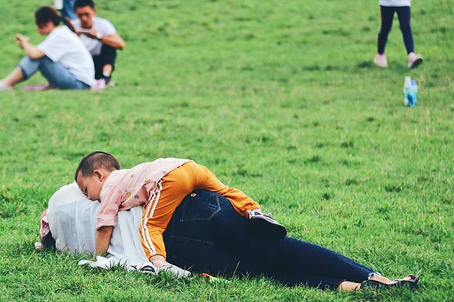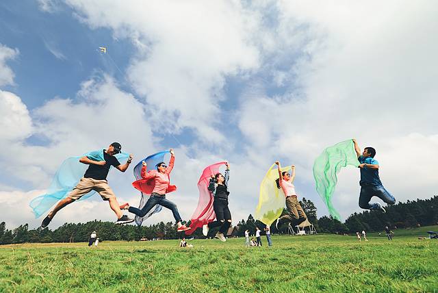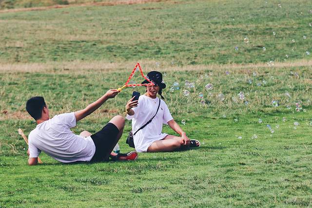 在海拔1900米的仙女山上,三三两两的人或坐在草地上发呆,或在野餐,或秀着恩爱,或放风筝,每个人都在尽情的享受草原上的快乐时光。