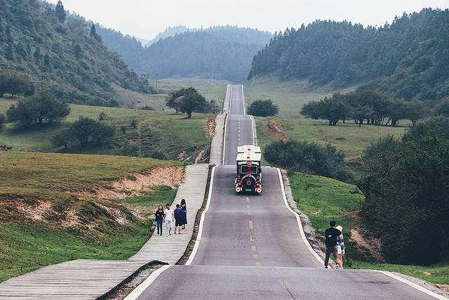 小火车经过一段起伏跌宕的柏油路,远远的望去颇为壮观,下车沿着长长的木栈道走走,心情愉悦。