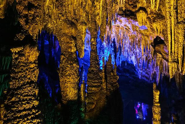 被誉为“地下艺术宫殿”的芙蓉洞,有金銮宝殿、雷峰宝塔、玉柱擎天、犬牙晶花、千年之吻、海底龙宫、巨幕飞瀑、石田珍珠、珊瑚瑶池等各种形状的钟乳石。