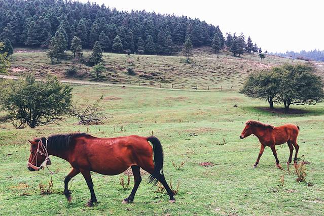 乘小火车来到武隆仙女山国家森林公园,一匹匹骏马在身边走过,羊在草地上悠闲的吃草。