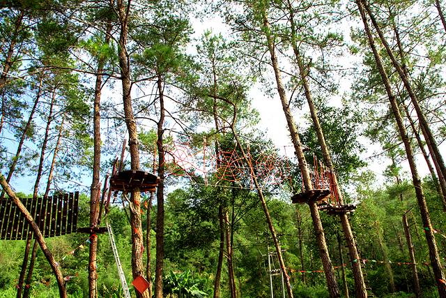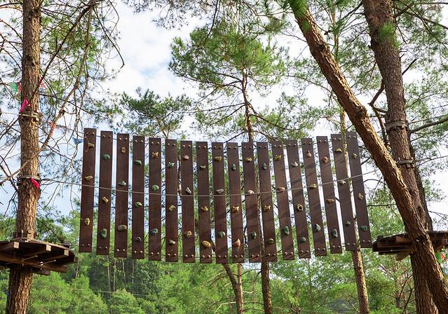树上穿越全线180米,是集练习、挑战、惊险、刺激、穿越于一体的娱乐挑战项目。树上穿越利用 九龙 江特有的自然环境,在树林、山水之间设置梯子、吊桥、穿越隧道、丛林索道、空中飞人、树筒平衡等各项难易程度不等、风格各异的重重关卡。