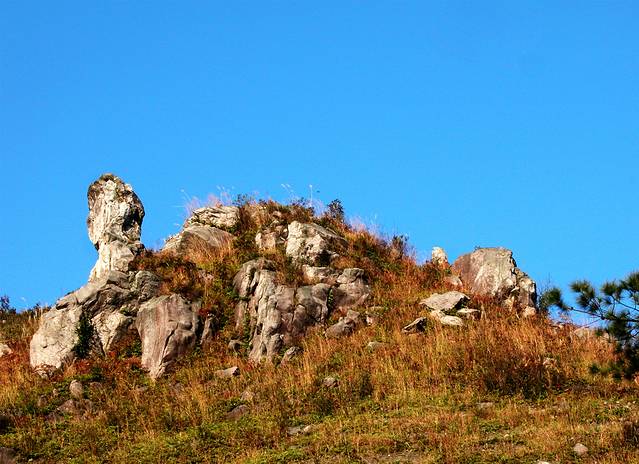 神龟啸天是一处奇石景观。在公园中部的岭子峰,有一块长约10m,高6m的巨石,远看它非常像一只仙龟在仰天长啸,栩栩如生,惟妙惟肖。据说它是当地苗寨的守护神,保佑村子风调雨顺,丰收大吉。
