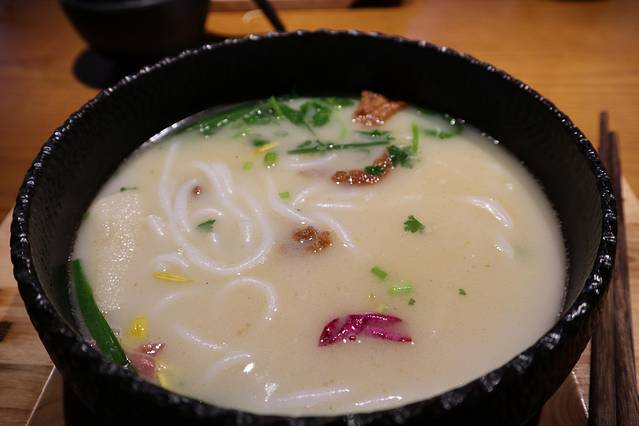 经典过桥米线(29.90员)鸡汤的味道真的很浓,味道还可以。