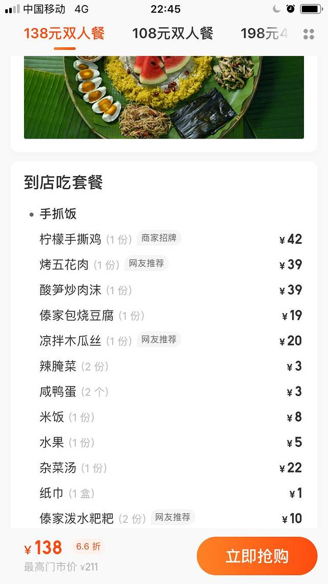 价钱:138元/2人(美团)