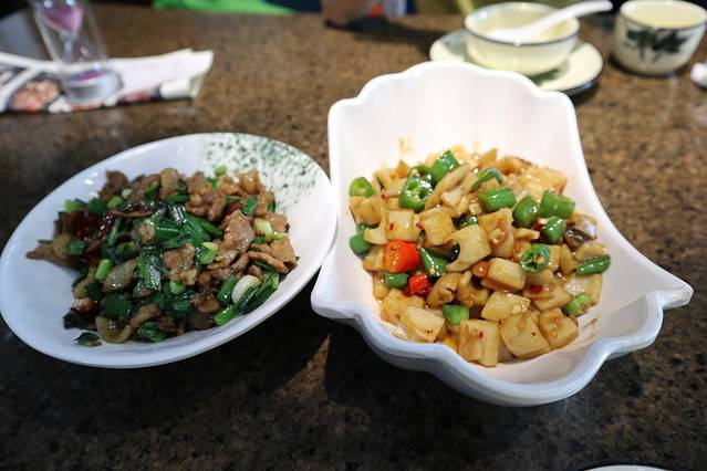 外婆小炒肉(左)29元份/、外婆炒藕丁(右)12元/份