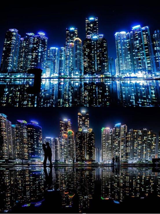 这边是露天的Bar,是拍海云台夜景的最佳机位点,拍得很到位,这个广场上有大面积的水池,完全可以倒映出对面建筑的对称景象,很多人都来这边拍照。我个人觉得晚上和朋友来这里微醺一下也还是很不错的,有对象的话就更浪漫了。