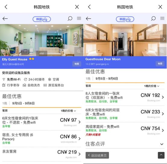 上面有酒店牌价的折扣,一般的房间都是带早餐的,而且就是釜山当地的酒店,也不会出现没房间的情况(携程上市拿到一定的酒店预留房间额度的,这个软件是当地的中文订购软件,信息比价实时)我看了一下里面有1300多家左右收录在这个平台上,对比了同一家酒店,这上面更便宜,我这四天都是在这上面定的。大家定的时候记得参考!