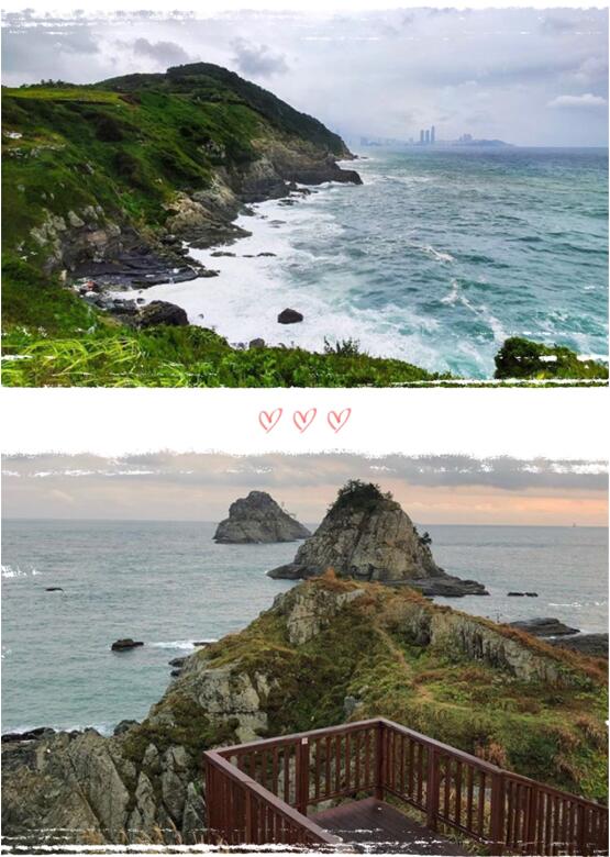 这边是有一个天空栈道,大家可以沿着海岸线走走很美的说,我选择坐公交车直接上来,毕竟带这一家老小的,走太远不方便。这边还有园区小火车,20分钟一班,有四个下站的地方。我们是下来的在火车上和旁边的游客交流以后听说这边的太宗台吃海鲜,我们就直接下去了,来了以后果然是便宜又好吃,推荐大家。