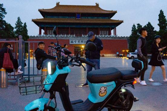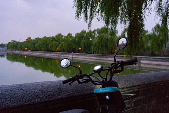 下午,我骑着小牛从建国门出发,从东华门大街进入故宫。从东华门进来后,沿着故宫的护城河筒子河走,拐两个弯后,便到了午门。故宫已经闭馆,此刻午门前人数稀少,本地大爷大妈开始出现在故宫附近遛弯,选择这个时间来午门前,可以享受一段难得的惬意时光。