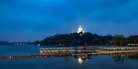 北海公园以琼华岛为中心,琼华岛上白塔耸立山巅,成为公园的标志。该岛的建造仿照了传说中的仙境,岛名源于“蓬莱仙山上有使人长生不老的琼树之花”。琼华岛又称白塔山,白塔建于清朝顺治八年(1651),是一座藏式喇嘛塔。因顺治皇帝笃信佛教,尤其崇敬西藏喇嘛诺门汗,而喇嘛塔就是西藏喇嘛诺门汗建议建造的,塔址也是他选择的。