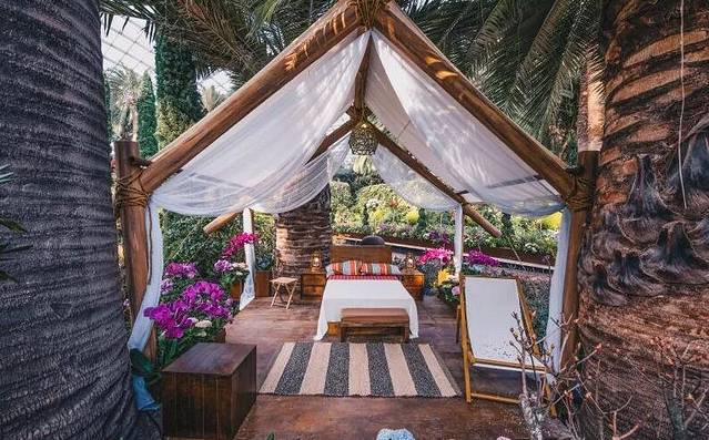走过花丛间的木栈道,绿地中还有精心布置的轻奢帐篷。仔细一看,其中的装饰不失雅致,周边还有舒适的吊床可供小熊“小憩”。一边感受着原汁原味的清新自然,一边又享受源自城市酒店的舒适,看来小熊们的山中度假非常滋润~