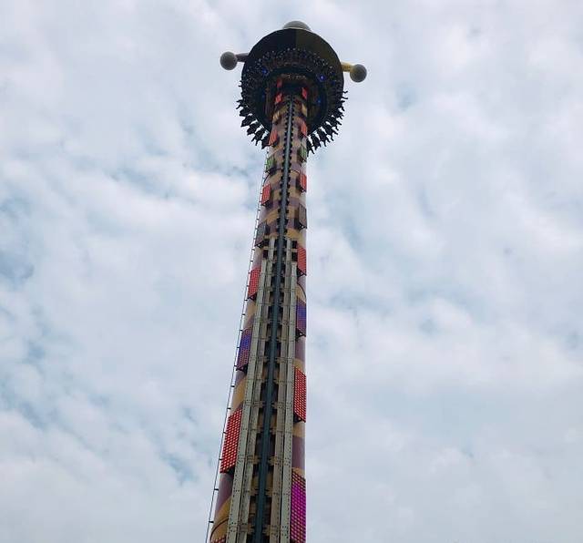 垂直过山车:我们在上午一系列令人惊心动魄的操作之后,感受到了游乐园带给我们的刺激,这次是在我们吃完午饭后(不过园区的餐饮真的分量很少而且确实没有那么好吃),上车之前我还在和朋友说会不会把午饭吐出来啊,然后我没有午睡显得精神不太好,所以一开始没有太想上去,但是我听到了我记忆尤深的一句话,旁边一位大哥对着他的朋友说,你这么年轻就啥也不敢玩,以后怎么办啊。我瞬间感觉到我自己的尊严在推动着我走向那个恐怖的轨道,最终我们还是“如愿”地坐上了车,从最高点停住的瞬间感觉生死已经被自己置之度外了,下来的一瞬间,心脏停止跳动了一秒钟,那一瞬间,大脑一片空白。最终在我们惊魂未定的神情中,停了下来,下车时,腿已经不是自己的了。再丢一魂。