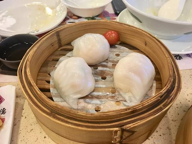 点都德招牌茶点,负责任的说这是我目前吃过最豪华的虾饺,因为里面足足包裹了4-6块虾肉,不愧叫虾饺皇,外皮近乎透明,一口咬下去起来满满的幸福感。