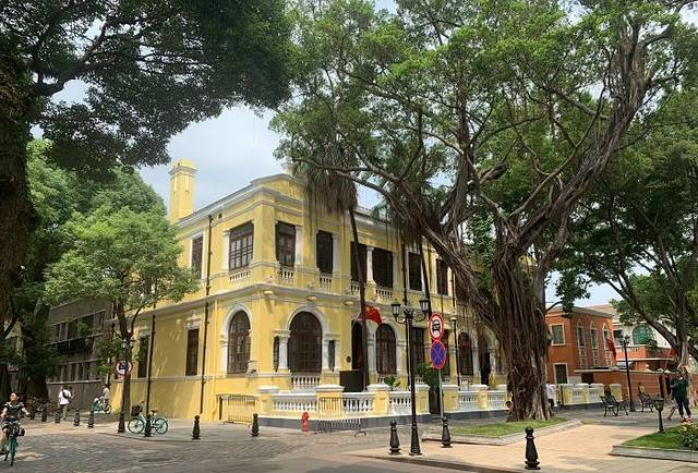岛上的建筑基本上是反映出民国时期在中国的一些建筑形式,典雅大方,珠宝行、大户人家居住地、衣行、银行,昏黄的路灯下更显得一丝慵懒和萧条,不过确实是拍照的好景点,带有历史印记的墙壁下,一对对酷爱照相的情侣在窗前打卡,照相机里留下的不仅是这时候的精彩,更重要的是未来的回忆和甜。