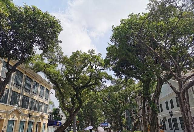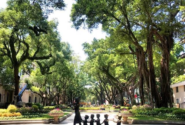 紧接着我们去了沙面,据说是有名的网红打卡地,刚到时,就被沙面的人流量给惊到了,外地游客、悠闲散步的行人、拍婚纱的新人都聚集在这里,很是热闹。